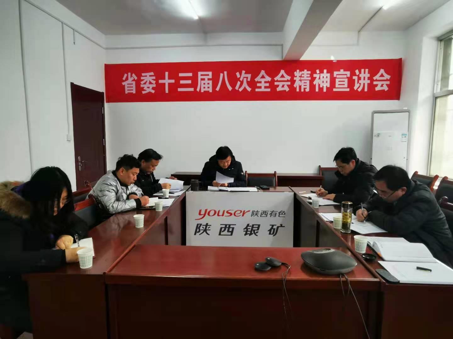 12月17日,陕西银矿组织召开省委十三届八次全会精神宣讲会。会议以视频形式召开,陕西银矿党委书记、执行董事、宣讲团成员邓建业作宣讲报告,共设一个主会场,五个分会场,120余人聆听报告。