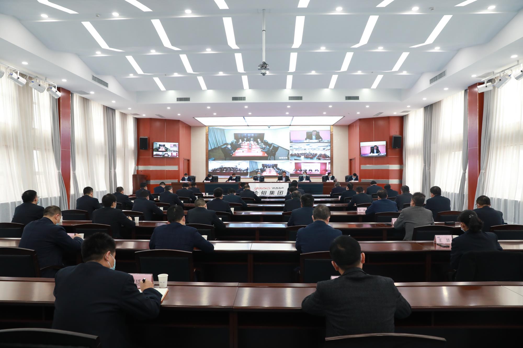 会议以视频形式召开,主会场设在渭南总部,分别在西安、金堆、汝阳、山东设分会场。公司领导班子成员,总经理助理、金钼股份经营层、机关各部室负责人、各单位领导班子成员等100余人参加会议。