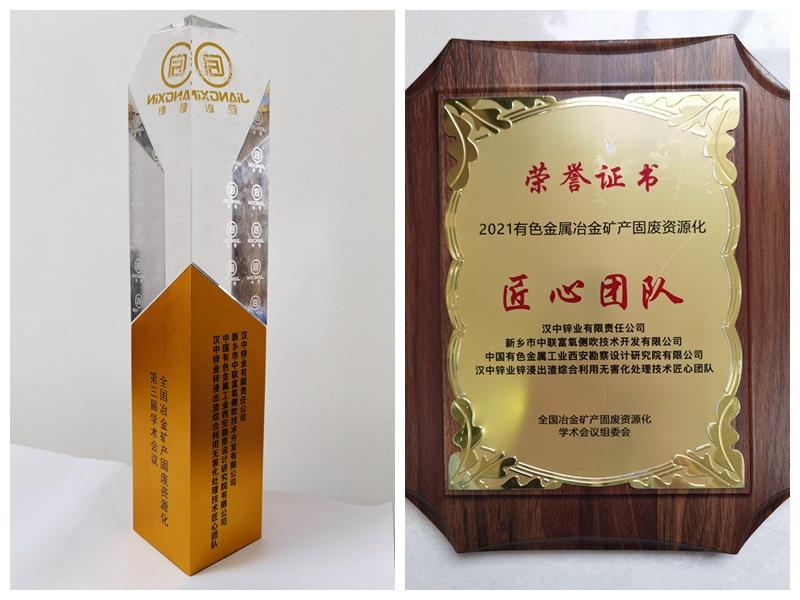 日前,在江西南昌市召开的 “全国冶金矿产固废资源化第三届学术会议”上,西安勘察院和汉中锌业有限责任公司、新乡市中联富氧侧吹技术开发有限公司共同申报的“《汉中锌业锌浸出渣综合利用无害化处理技术项目》技术团队”,荣获 “2021年有色金属矿产固废资源化匠心团队”荣誉。