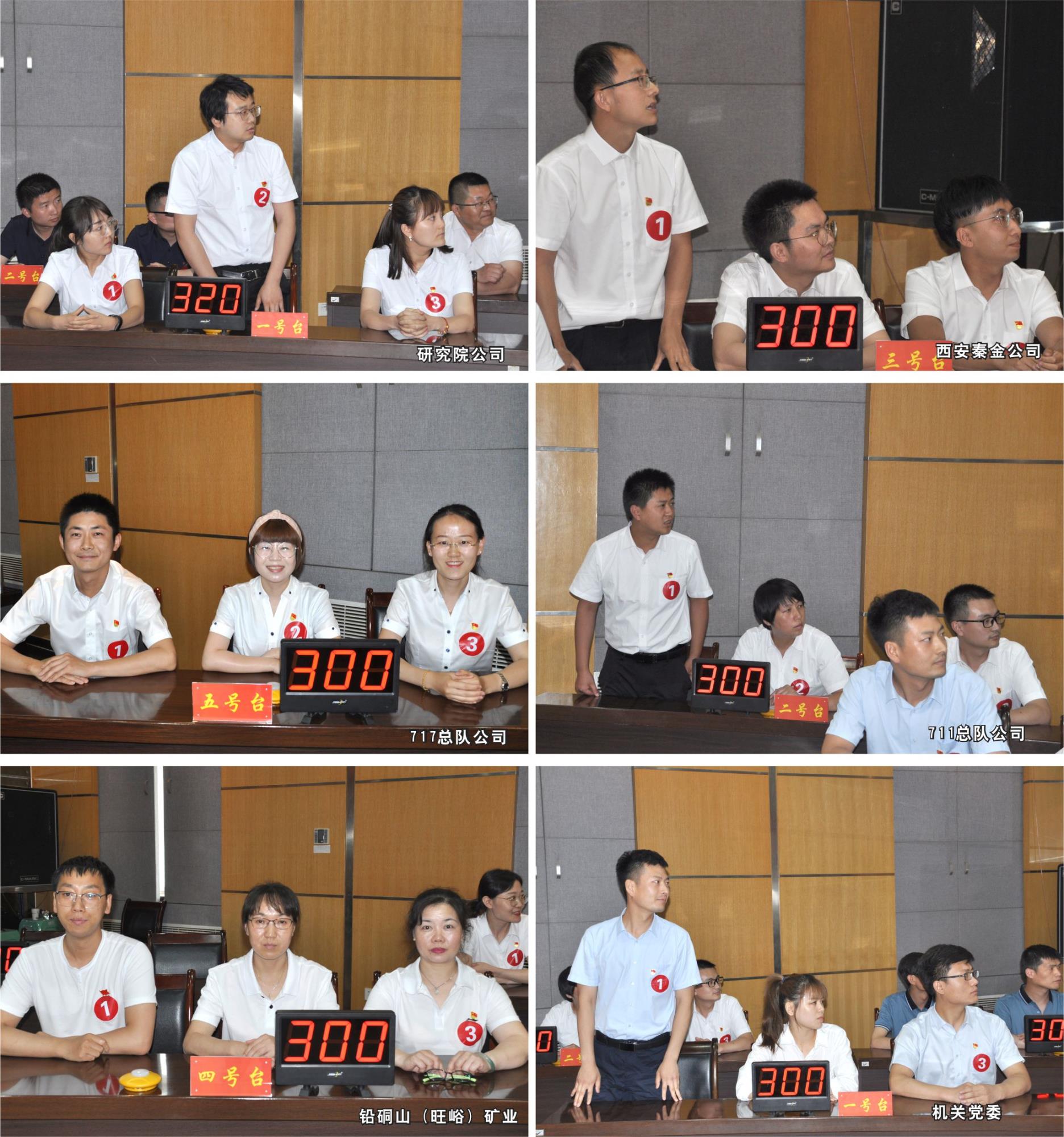 为争夺决赛入场券,比赛刚一开始就进入白热化。个人必答题是各队必争“筹码”,首轮赛完,各队比分旗鼓相当。进入抢答环节,比赛节奏陡然加快,选手们比知识、比能力、比速度,“夺分之战”反复上演,比分也逐渐拉开了差距。选手斩关夺隘、交锋激烈,观众们掌声不断、直呼精彩。时间不知不觉就来到了风险题环节,积分相对落后的队伍放手一搏、以期反超,中上游队伍审时度势、厚积薄发,贡献了一场紧张激烈、精彩纷呈的党史知识盛宴。经过激烈角逐,最终研究院公司、机关党委、西安秦金公司、717总队公司、711总队公司、铅硐山(旺峪)矿业6支代表队脱颖而出,锁定决赛局。