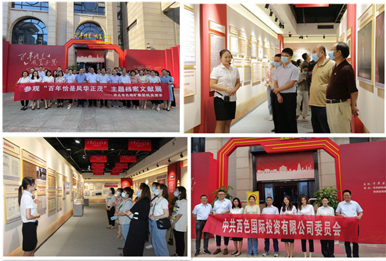 为深入学习贯彻习近平总书记“七一”重要讲话精神,引导广大党员干部传承红色基因、赓续红色血脉,推动党史学习教育走深走实,近日,在地矿集团、黄金集团的统一安排下,机关党委、物化探总队公司、研究院公司、西色国际等单位纷纷组织党员干部及档案工作人员,走进陕西省图书馆,集中参观“百年恰是风华正茂”主题档案文献展。