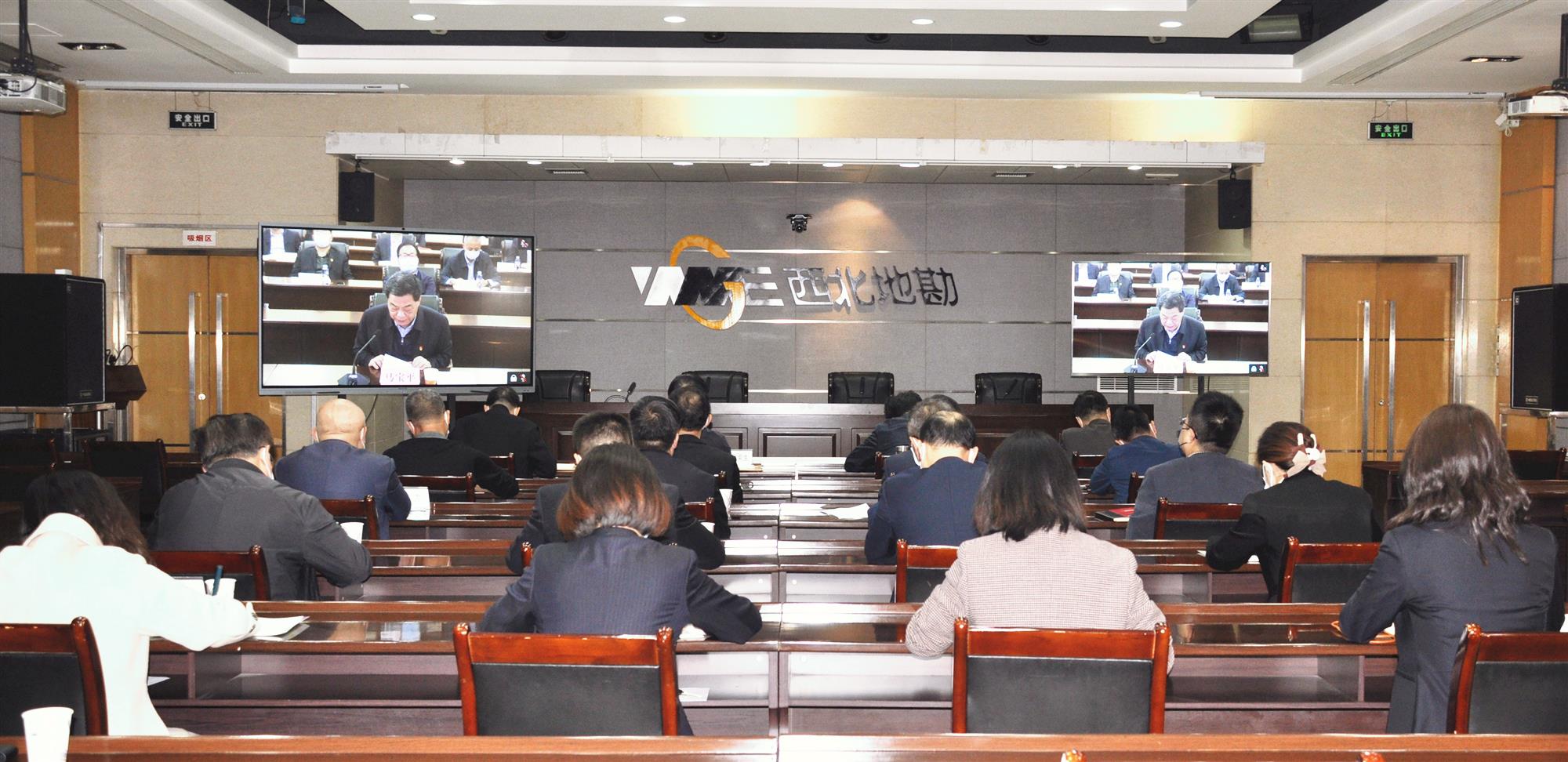 地矿集团、黄金集团集团领导班子成员、相关部门负责人在本部及部分权属单位分讲堂参加视频会议。