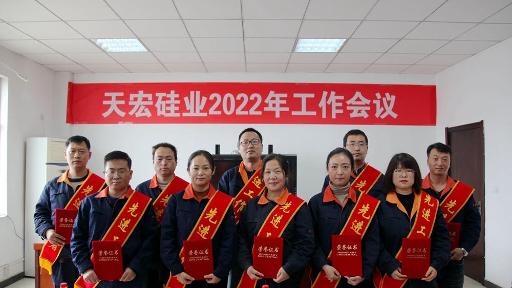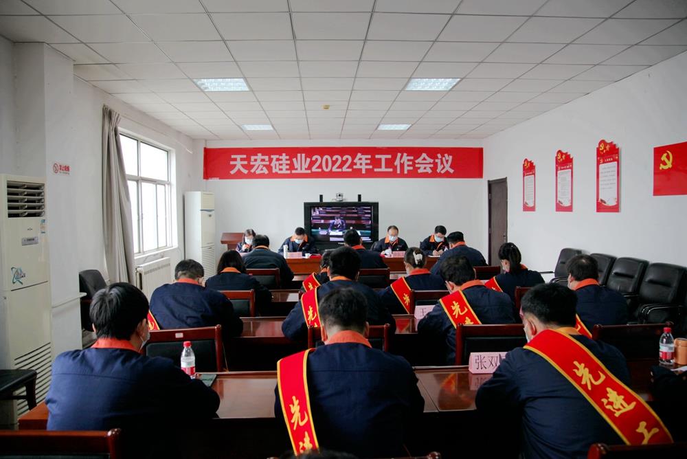 3月22日,天宏硅业召开2022年工作会议。公司党委副书记、总经理苏旭盛作了题为《砥砺前行求生存锐意进取谋发展 为打破僵局转型发展承压奋进》的工作报告。公司领导班子成员、副总工程师、中层干部、各车间部室负责人以及公司2021年度先进工作者参加会议。