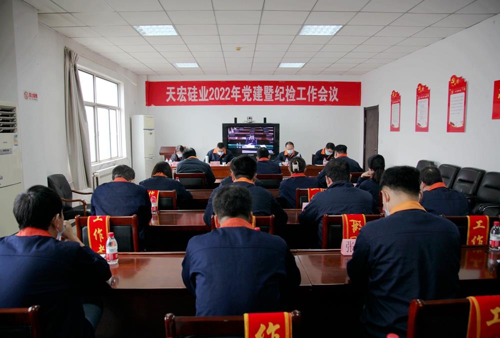 3月22日,天宏硅业召开2022年度党建暨纪检工作会议,学习传达陕西有色金属集团有关会议精神,回顾总结2021年度公司党建和纪检各项工作,安排部署2022年党建和纪检重点工作任务。公司党委副书记、总经理苏旭盛主持会议并讲话,公司领导班子成员、副总工程师、中层干部等参加会议。