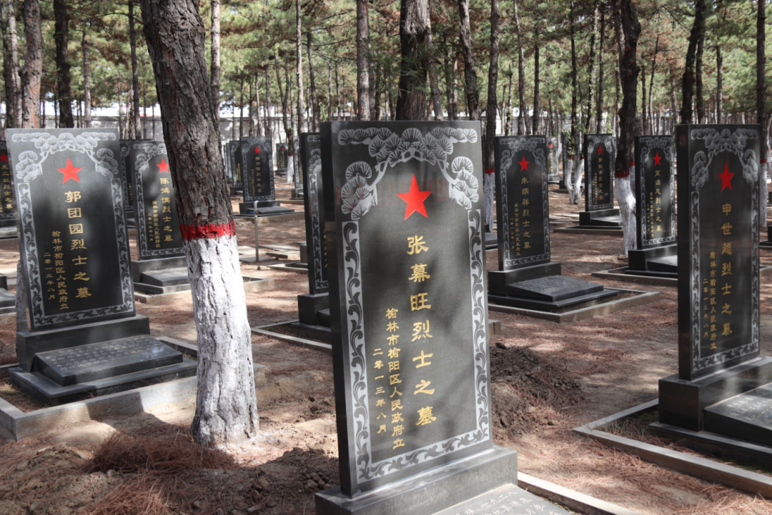 进到陵园的里面,并排的一座座墓碑,诉说着一段段令人难忘的历史。正值青春年华的他们,为了祖国和人民,把鲜血和生命永远地留在了榆林大地上。怀着对烈士们的敬仰之情,向烈士深深地鞠躬,大家用毛巾把墓碑上面的浮尘擦去,认认真真、一笔一画地在烈士墓碑的碑文上描了起来。每描一笔,都对烈士的舍生忘死多一分敬仰;每描一划,都为今天的幸福生活多一分感恩。