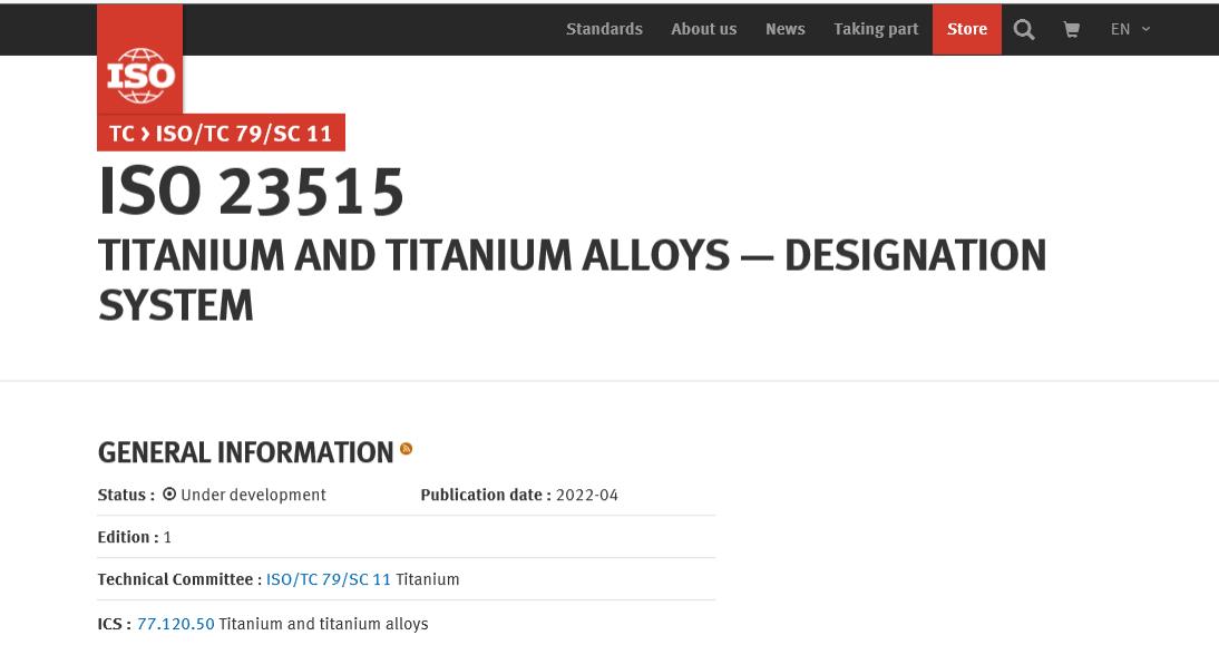 近日,从国际标准化组织官网获悉,由中国牵头、宝钛集团主导制定的ISO 23515《Titanium and Titanium alloys—Designation system(钛及钛合金命名系统)》正式发布实施,标志着我国在钛领域国际标准化工作中实现历史性重大突破,填补了国际钛牌号命名规则及牌号化学组分范围的空白。