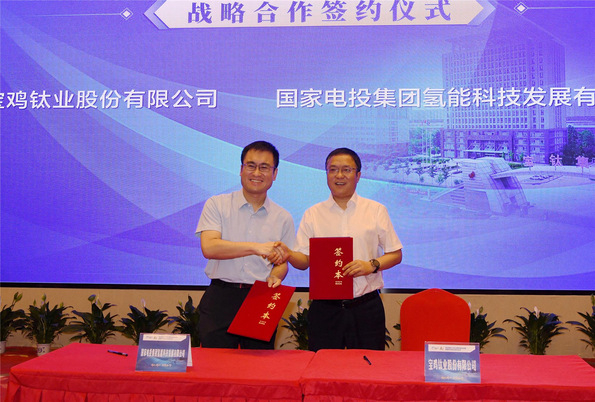 会上,与会人员集体观看了宝钛股份上市20周年宣传片。中国航发动力股份有限公司副总经理沈鹏与宝钛股份副总经理何书林,国家电投集团氢能科技发展有限公司宁波绿动燃料电池有限公司总经理李鹏飞与宝钛股份副总经理容耀分别上台,签订了战略合作协议。由于疫情原因,法国赛峰集团总部提前与宝钛股份进行了视频签约,并安排赛峰集团亚洲区供应链经理周寿波与宝钛股份外贸部主任张杰现场交换了签订的协议。