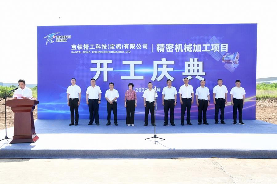 近日,宝钛精工科技(宝鸡)有限公司精密机械加工项目开工仪式在宝钛眉县产业园举行。眉县县长张小平,宝钛集团党委副书记、总经理雷让岐等出席仪式。眉县县委常委、副县长王富强主持仪式。眉县县长张小平,宝钛集团副总经理陈战乾,宝钛精工股东代表、董事张爱华分别致辞;宝钛精工董事长温伟介绍项目情况。