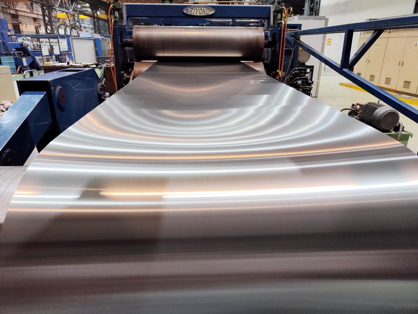 实现单重大于5吨的合金锻造、轧制及在线热处理是该合金研制过程中的又一个难点。为保障合金的热加工成型,宝钛集团发挥长期积累的技术优势,结合该合金的应力特点,详细大胆地制定加工工艺,不断摸索、科学设定了轧制关键参数,经过多道次的轧制,最终制备出符合要求的英康洛伊合金合金带卷。