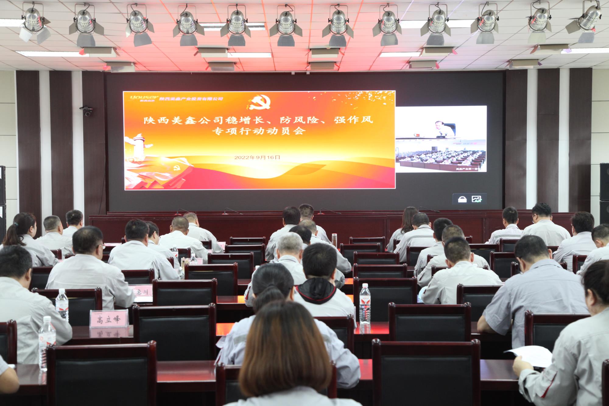 9月16日下午,陕西美鑫公司召开“稳增长、防风险、强作风”专项行动动员会,深刻领会省委十四届二次全会和省国资系统防范化解重大风险工作会议精神,全面落实省国资委和集团公司相关工作要求,研究部署当前和今后一段时间内企业稳增长、防风险、强作风工作重点。
