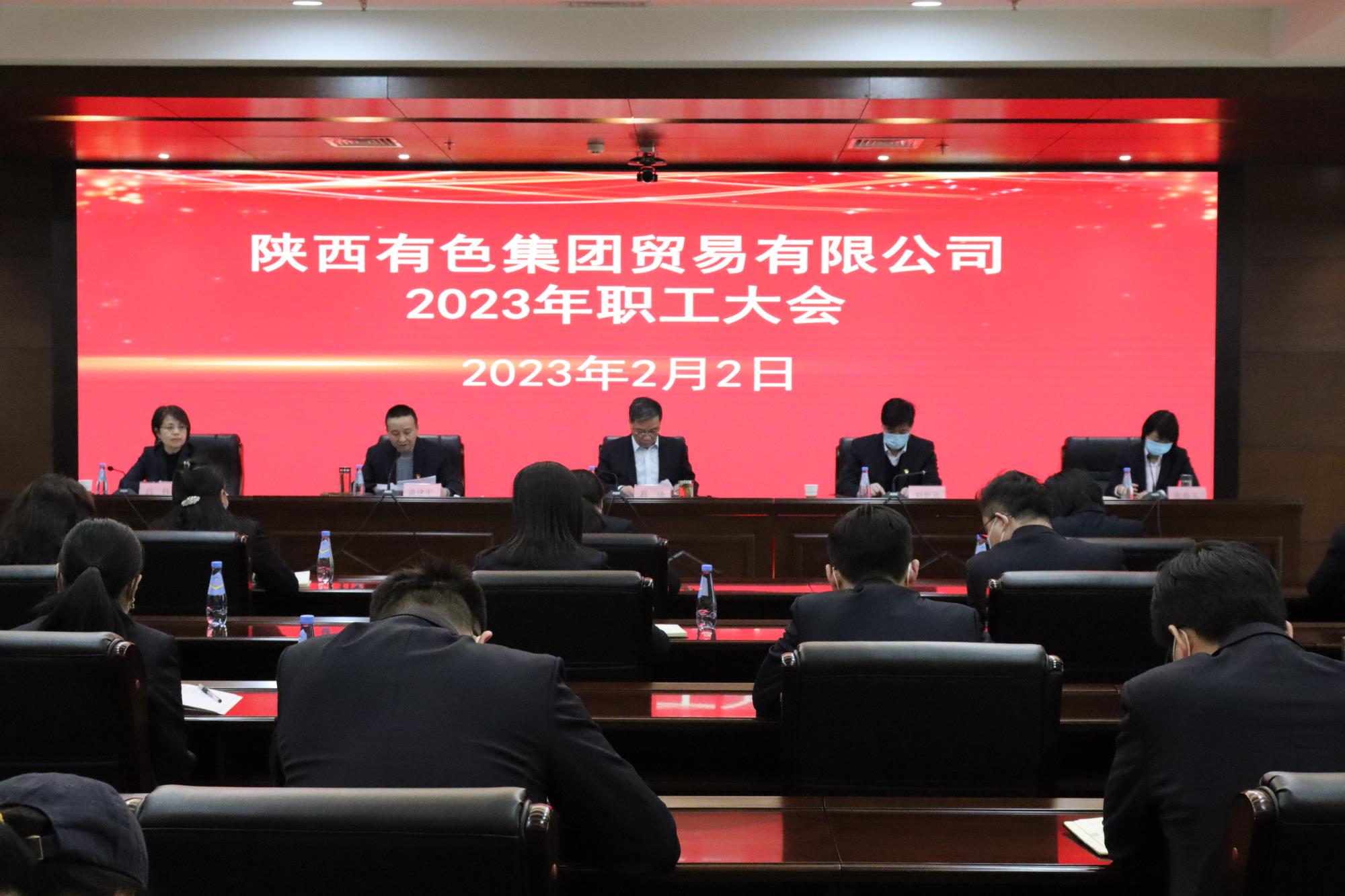 2月2日,陕西有色贸易公司召开了2023年职工大会。公司党委书记、董事长葛琦向全体职工传达了陕西有色金属集团三届一次职代会暨2023年工作会议精神,党委副书记、总经理刘新录作了题为《强基固本保发展 提质增效创佳绩 为完成全年目标任务而努力奋斗》的工作报告。贸易公司党委委员、副总经理、总会计师张春玉通报了2022年度经营业绩完成情况说明及2023年度经营目标分解报告;公司党委委员、纪委书记吕锌宣布2022年度先进个人和先进集体及劳动竞赛优胜集体表彰决定。会议由党委委员、副总经理黄建平主持,本部职工及子公司代表参加会议。