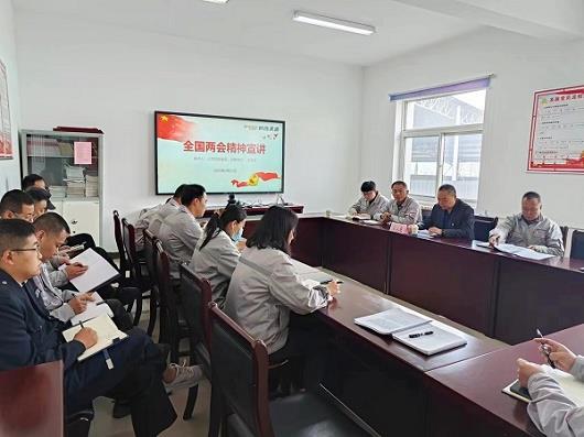 各基层单位将学习好、贯彻好全国“两会”精神作为一项重要工作来抓,利用工作群“快”、宣传栏“新”、黑板报“实”的特点,开展广泛宣传,传达两会好声音,解读两会新思想,利用“三会一课”、宣讲学习等方式完成集中传达学习15次。各车间党支部结合工作实际就两会内容展开个人自学、交流研讨,进一步强化职责使命,推动全国两会精神进基层、进一线、进班组。通过透彻深入的宣讲,鲜活生动的解读,让广大党员干部职工备感振奋、备受鼓舞、倍增干劲,凝聚起上下同心、团结奋进的磅礴力量。