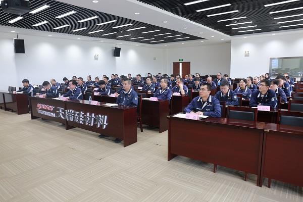 会议指出,习近平总书记来陕考察重要讲话高瞻远瞩、思想深邃、任务明确、语重心长,为我们实现现代化发展指明了前进方向、提供了根本遵循。他强调,一是要在深学细悟上持续发力,把学习贯彻习近平总书记重要讲话精神作为当前和今后一段时期的重要政治任务,作为开展学习贯彻习近平新时代中国特色社会主义思想主题教育的重要内容,在公司迅速掀起学习热潮。二是要在以学促干中找准方向。理解好把握好习近平总书记赋予陕西的新定位新使命,聚焦实现“五个方面新突破”和“四个着力”新要求,立足我们自身产业基础和资源禀赋,持续补短板、强弱项、固底板、扬优势,以科技创新为引领,加强技术攻关,积极推进公司生产工艺不断向更高端、更智能、更绿色迭代升级,推动公司向世界一流企业迈进。三是要在新征程中展现新作为。要拿出勇立潮头、争当时代弄潮儿的志向和气魄,坚定信心决心,敢于迎难之上,坚持不懈抓好公司二期项目建设和一期生产运行,源源不断向市场提供更多更好的天瑞多晶硅产品,为光伏及半导体行业蓬勃发展贡献天瑞智慧和天瑞力量。