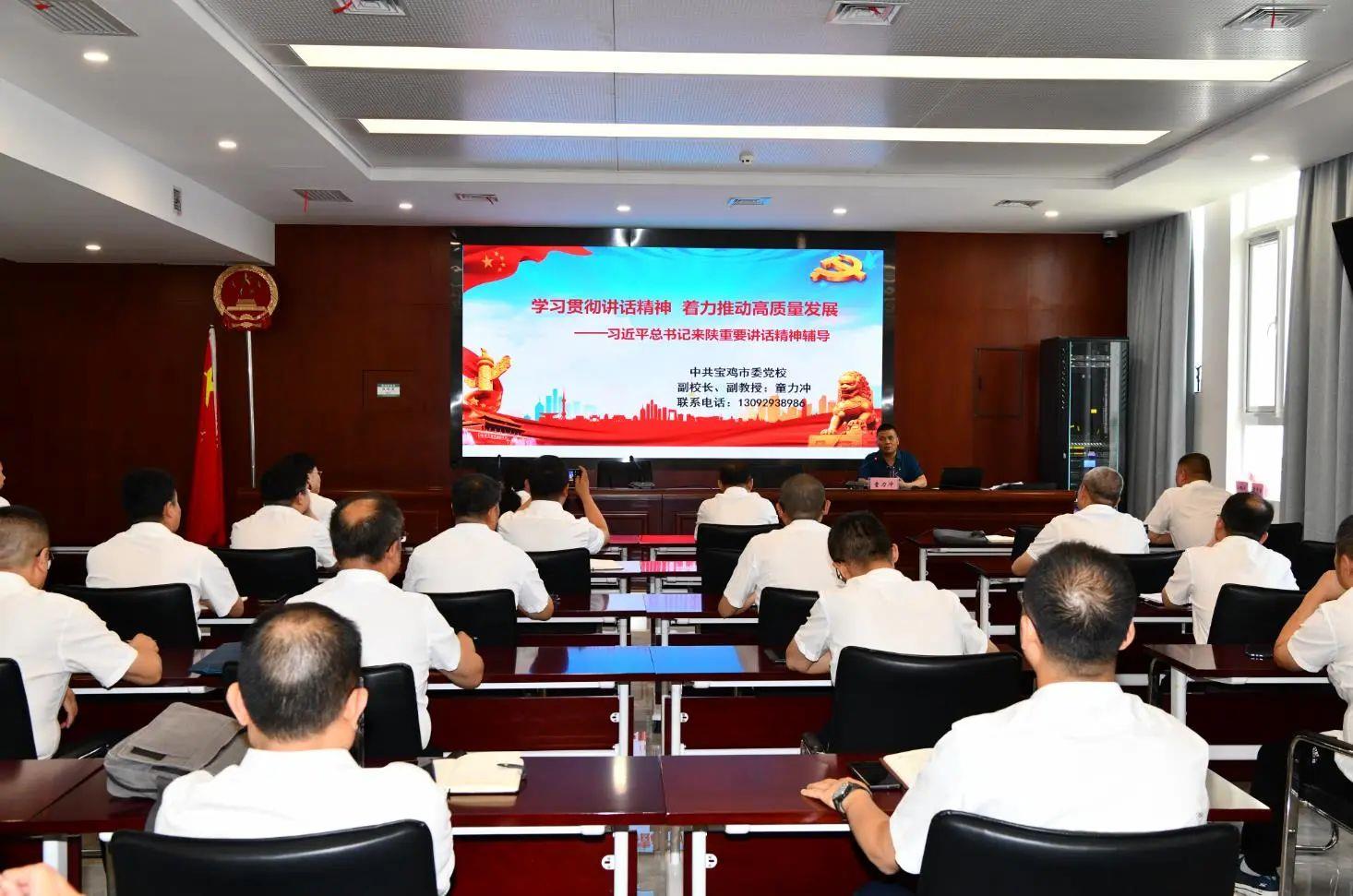 专题培训班上,宝鸡市委党校副校长、副教授童力冲围绕习近平总书记来陕重要讲话精神作了题为《学习贯彻讲话精神 着力推动高质量发展》的报告,为全体学员讲了一堂深入浅出、内涵丰富的专题辅导课。