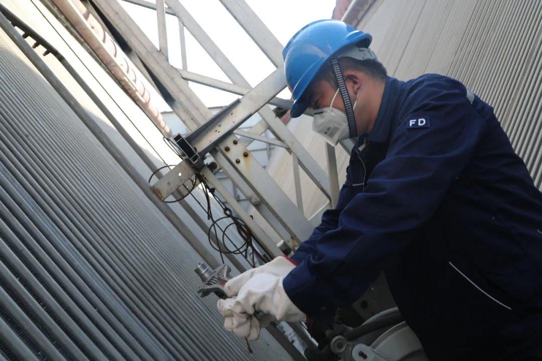 “夏天炎热,对检修的要求更加高,我们必须确保每一个翅片散热正常,排除间隙堵塞”,孙增逸仔细地查看翅片间隙,时不时用扳手拧紧冲洗架接口等设备。