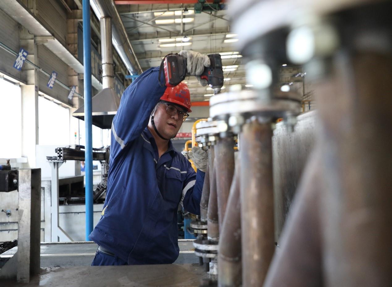 夏日炎炎,金钼集团金属分公司钼粉分厂B区的 “任大夫”不惧酷暑,对生产设备进行检修,倾尽全力保障生产。