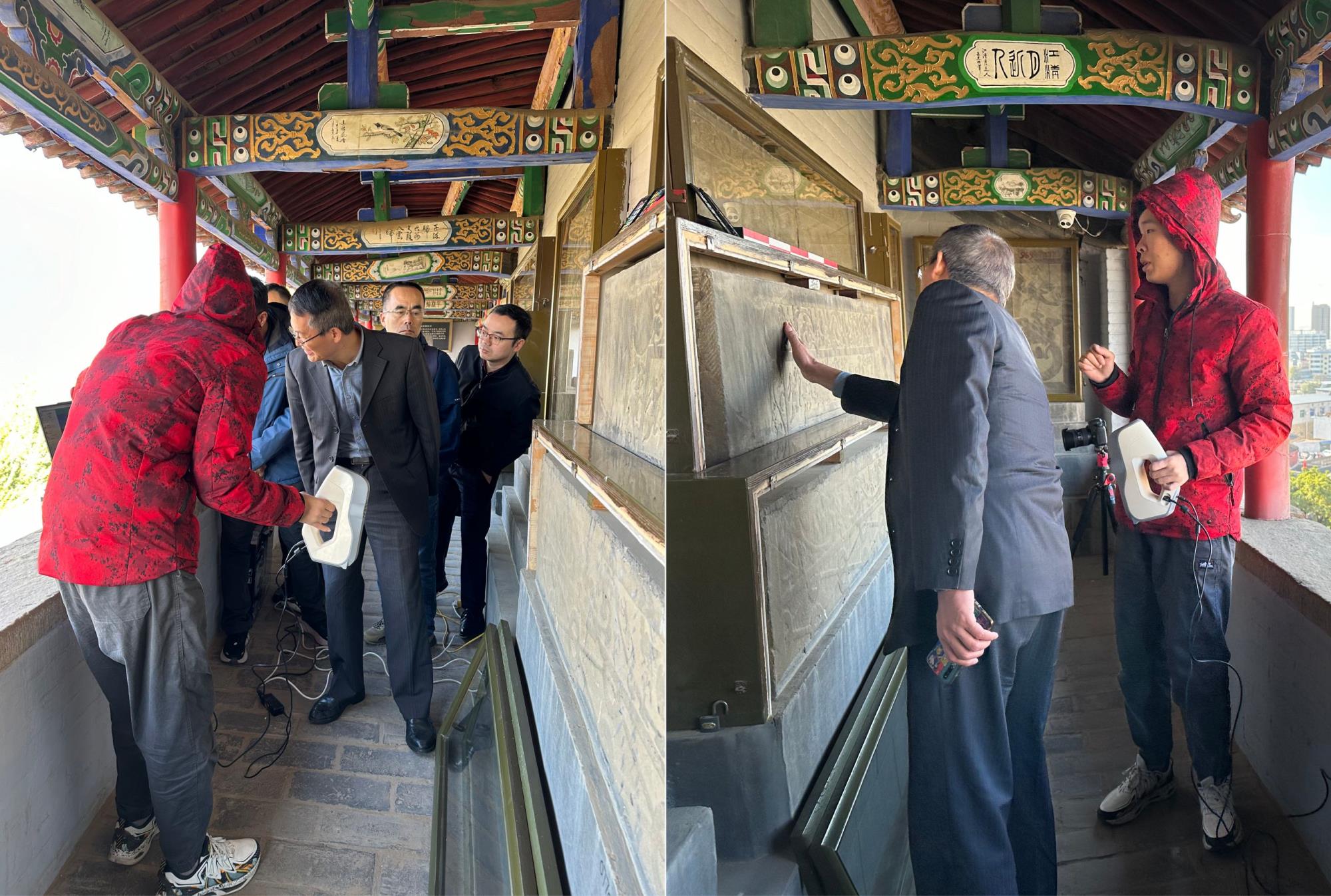 专家组现场查看了汉画像石实物及保存现状,详细检查了数据采集设备、数据采集方式、文物保护措施和采集过程,听取了项目组野外工作汇报,并就项目实施情况及相关问题进行了质询、讨论。专家组一致认为,该项目严格按照设计开展工作,采集的汉画石像数据符合相关规范和设计要求,项目野外工作进展、成果符合集团文物数字化科研项目野外验收相关规定,同意通过野外验收。