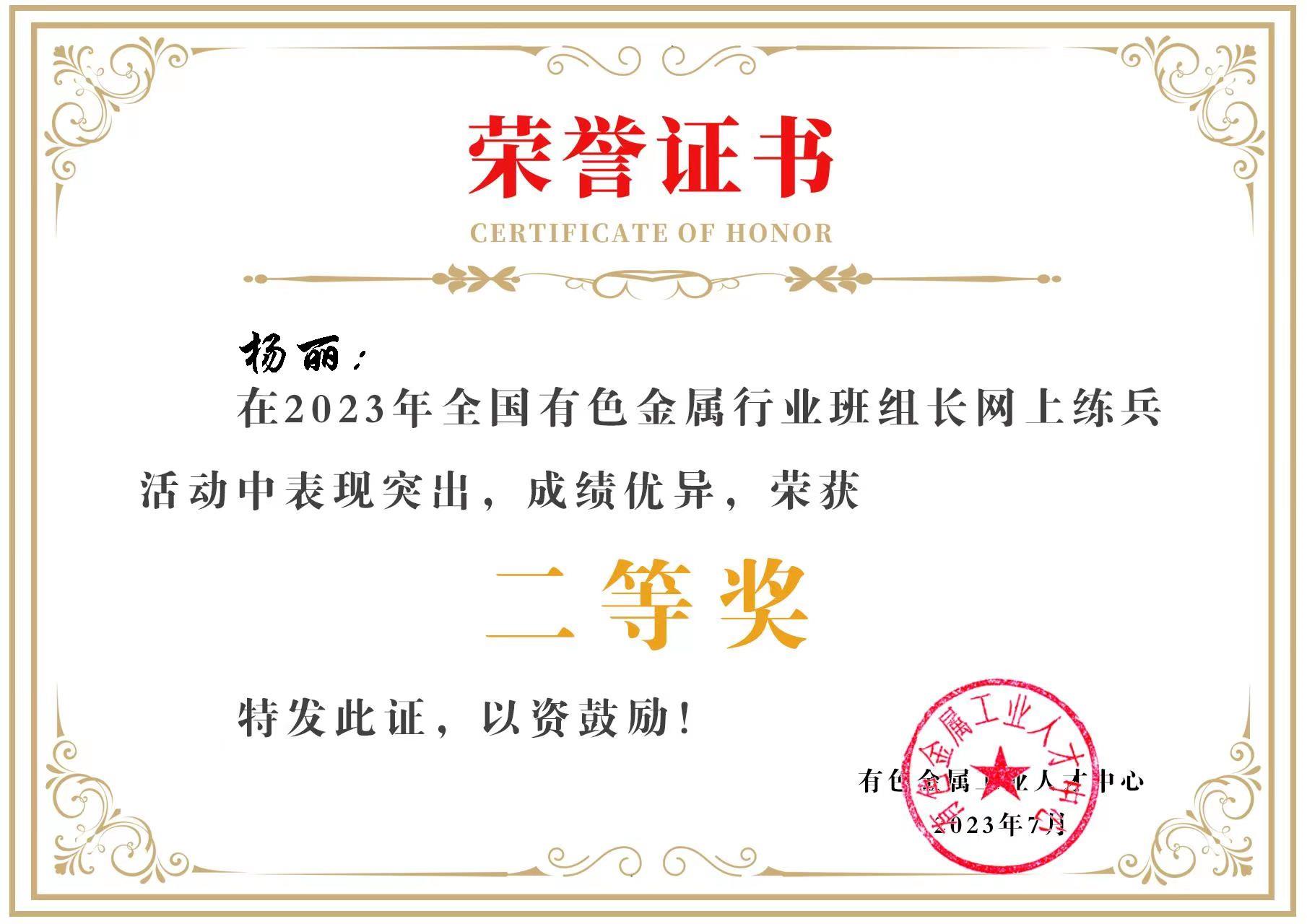 然而,生活的不易并没有让杨丽忘记求学上进,她酷爱读书,一有时间便埋头苦读,总结心得,写写记记,曾两次获得集团公司“书香三八”读书、家书征文活动一等奖,同时,经常废寝忘食钻研配电工岗位技能,始终坚持技术立身。2023年,先后在全国有色金属行业班组长网上练兵活动中打败近万名选手勇夺二等奖,无独有偶,在随后的“中国铜业杯”全国有色金属行业班组长综合管理技能竞赛中又荣获个人奖三等奖,身边的职工及家人都纷纷树起大拇指,称她是“逆境中成长起来的女汉子”。