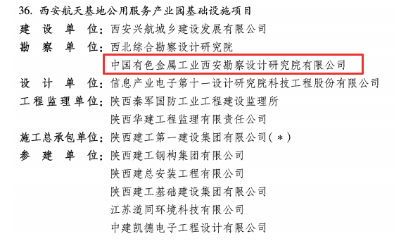 近日,中国施工企业管理协会公布了2022-2023年度第二批国家优质工程奖评选结果,西安勘察设计院参建的西安航天基地公用服务产业园基础设施项目获评“国家优质工程金奖”,延安万达文化旅游小镇项目获评“国家优质工程奖”。2022-2023年度,西安勘察设计院共4项参建项目获评国家优质工程奖。