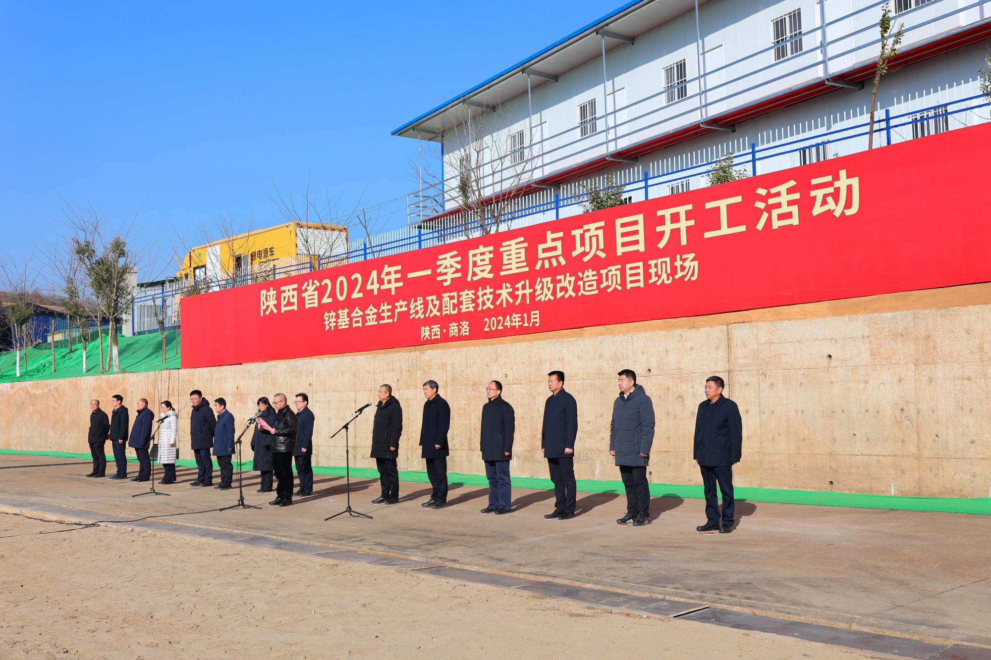 玉兔收尾,福龙祥临。2024年元月2日上午,全省2024年第一季度重点项目开工活动(商洛市分会场)在陕西锌业有限公司举行,陕西锌业锌基合金生产线及配套技术升级改造项目开工仪式与本次开工活动一并举行。开工活动由商洛市委副书记赵晓宁主持,商洛市委市政府及相关职能部门主要负责人,各县(区)委书记、政府县长,商州区四套班子主要领导及区直部门主要负责人参加活动。陕西有色金属集团副总经理苏旭盛、西安勘察设计院董事长许蓁蓁应邀出席,陕西锌业有限公司董事长崔旭东,总经理徐靖及公司领导班子成员、总经理助理、相关部室、项目组以及锌基合金项目承建单位、监理单位代表等200余人参加了开工活动。