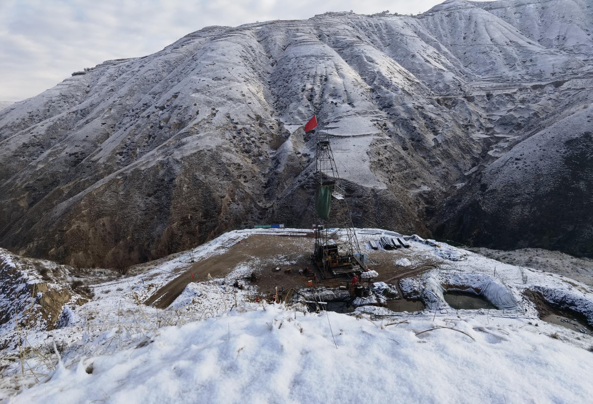 (一场春雪过后,甘肃永靖县姬家湾-抱龙沟一带煤炭资源调查钻探施工现场)