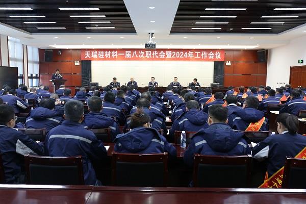 1月20日,天瑞硅材料召开一届八次职代会暨2024年工作会议,公司党委书记、董事长苏旭盛出席并讲话,党委副书记、总经理徐岩作工作报告,公司领导班子成员、职工代表、年度先进个人及先进集体代表110余人带着职工的心声和热情齐聚一堂,行使民主权利,共同为公司高质量集思广益,为改革发展建言献策,共同描绘发展蓝图。会议由公司党委委员、副总经理赵渭滨主持。