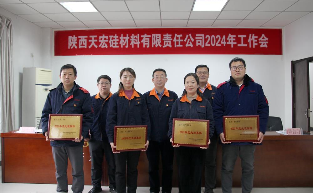 催人奋进,砥砺前行。为全面贯彻落实党的二十大和习近平总书记历次来陕考察重要讲话重要指示精神,落实陕西有色金属集团工作要求,1月31日,天宏硅业召开2024年工作会议,认真学习贯彻落实集团公司三届二次职代会暨2024年工作会议精神,安排部署2024年重点工作。公司党委书记、董事长刘建中出席并讲话,公司领导班子成员、副总工程师、职工代表、年度先进集体代表及先进工作者参加会议。
