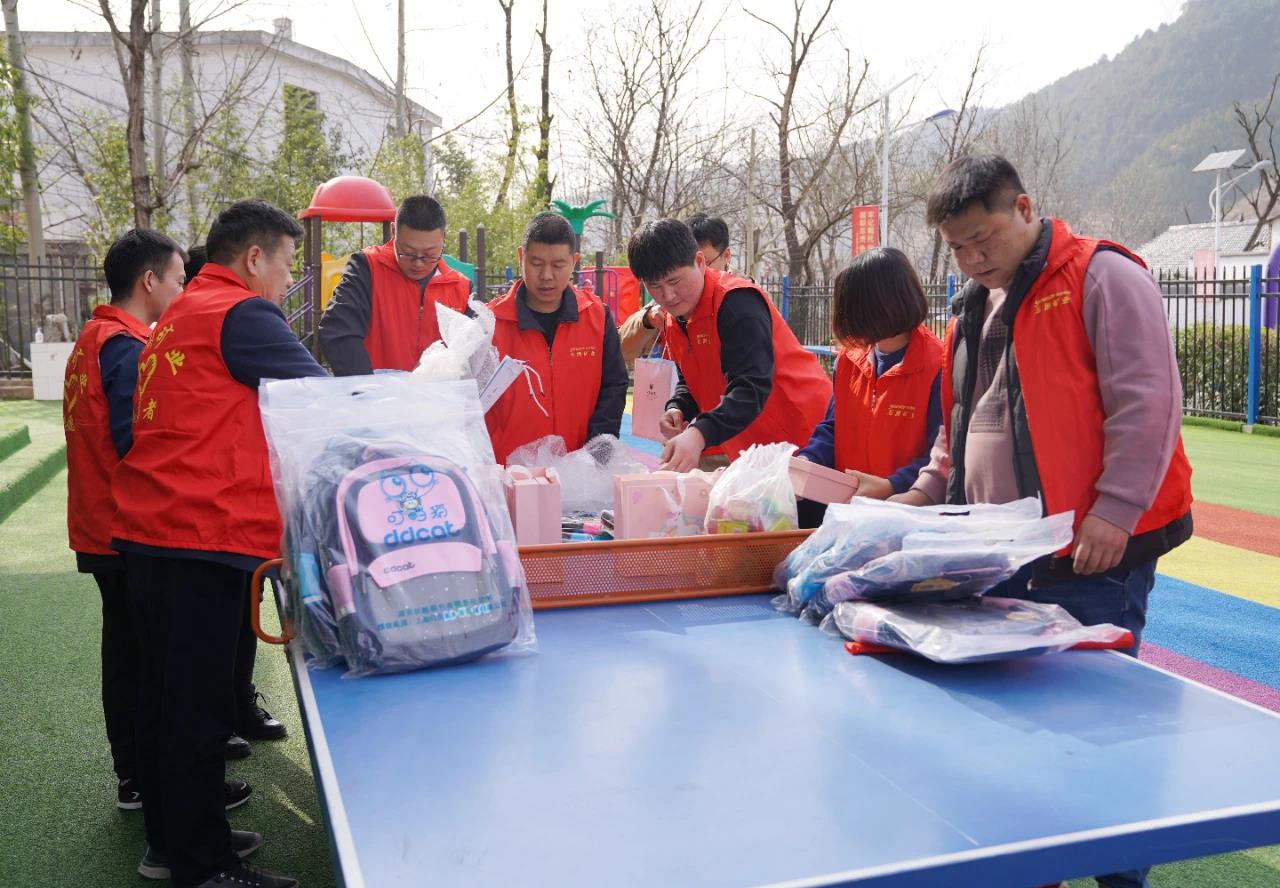 王力(右一)和五洲矿业青年志愿者在山阳县色河铺镇太山教学点开展关爱留守儿童志愿服务活动