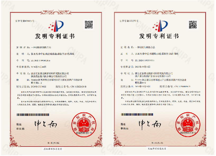 近日,黄金集团权属西安秦金、汇创公司(以下简称“两公司”)在银粉制备领域取得重大突破,成功获得《一种银粉的制备方法》(CN202010939005.6)、《一种银粉的制备方法》(CN202010938028.5)两项关于银粉制备的发明专利授权,不仅彰显了两公司在贵金属新材料研发方面的实力,也标志着在推动银粉制备技术革新方面迈出了坚实步伐。