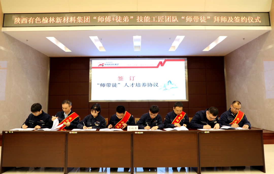 为进一步加快榆林新材料集团“四支队伍”建设,激励青年员工岗位成才,提升员工队伍的整体素质,4月16日上午,榆林新材料集团举行了首届“师傅+徒弟”技能工匠团队“师带徒”拜师及签约仪式。新材料集团党委副书记、总经理杨国平、相关职能部室负责人、二级单位负责人及业务部门主任、师徒代表约70余人参加了此次活动。
