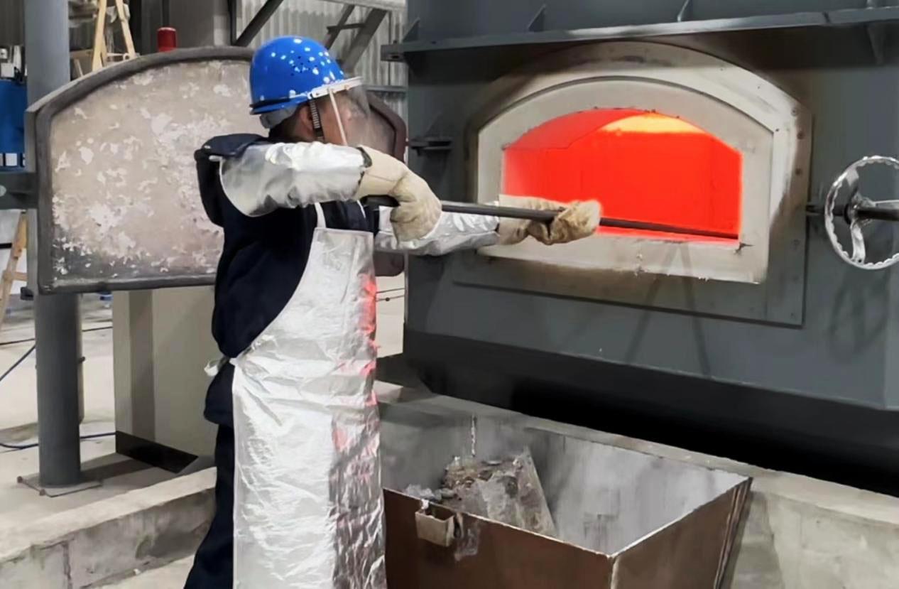 中试铸造生产线工作人员正在进行清渣作业