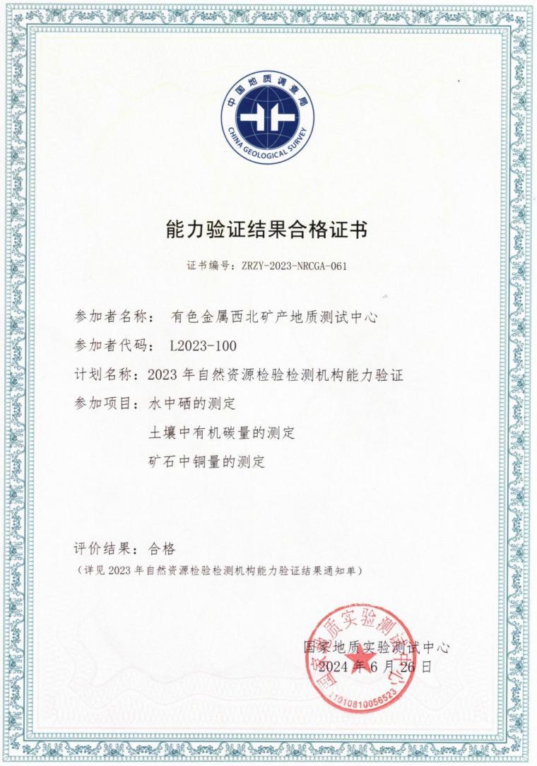 近日,中国地质调查局国家地质实验测试中心公布了2023年自然资源检验检测机构能力验证考核结果,地矿集团研究院公司参加的水中硒的测定、土壤中有机碳量的测定和矿石中铜量的测定三个项目,测