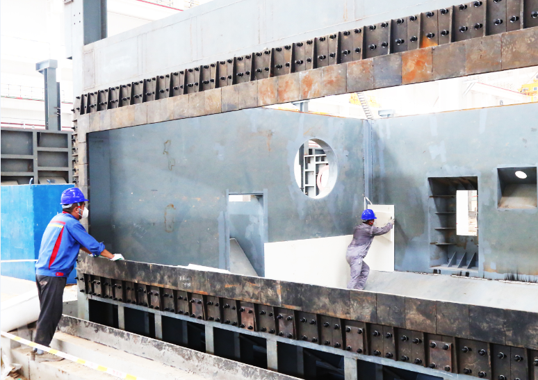 榆林新材料集团合金分公司设备部副主任吴瑞钊介绍,35吨熔保炉作为第一批进场的主体设备,承担着扁铸锭产品的生产,截至目前,该设备钢结构框架已就位,拼装焊接、筑炉等安装工作正在有序进行。