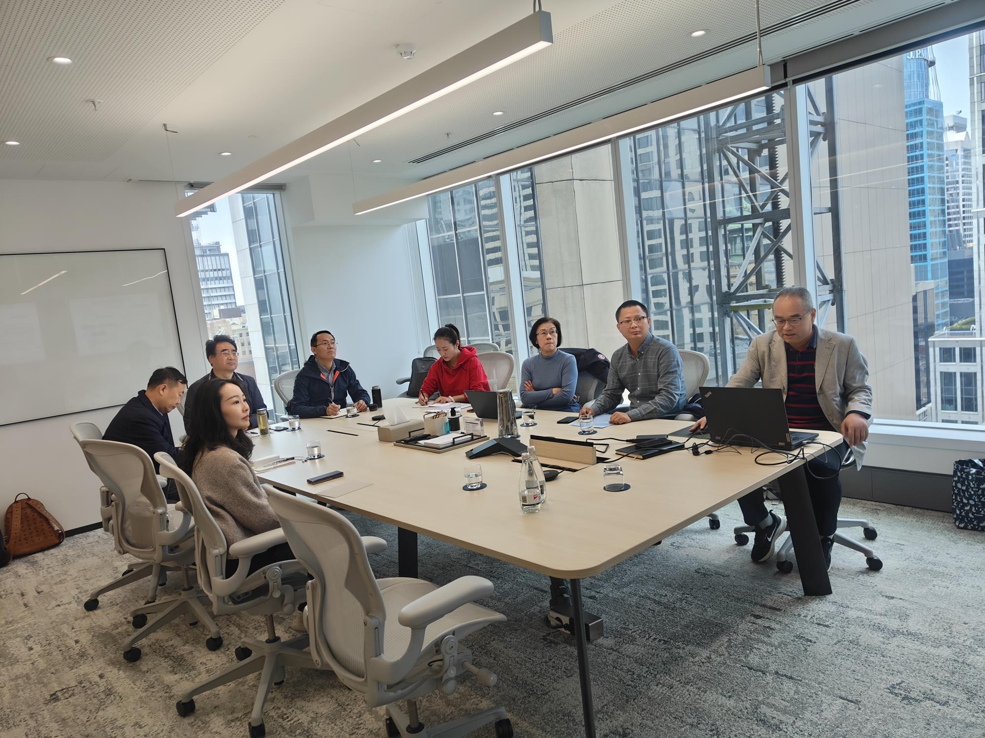 在位于悉尼的办公地点,秦西社一行听取了西色澳大利亚矿业公司及子午线矿业公司的工作汇报。代表团仔细查阅了相关材料,全面了解企业财务状况、经营成果和对现金流有重大影响的其他事项,并对下一步工作提出指导意见。