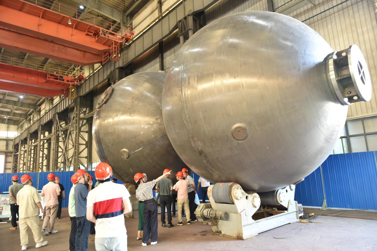 领导和专家们在生产现场详细询问并了解大科学装置实尺度工艺模型的研制、生产过程以及关键技术的攻关情况。他们充分肯定了宝色股份整体实力,并对宝色股份关键技术的攻关成果给予高度评价。