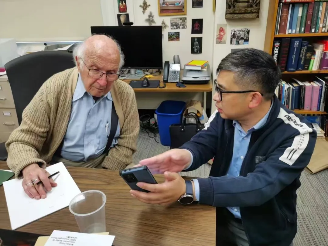 刘杰博士与诺贝尔化学奖获得者、康奈尔大学霍夫曼教授探讨常温脱碳药剂相关技术问题。