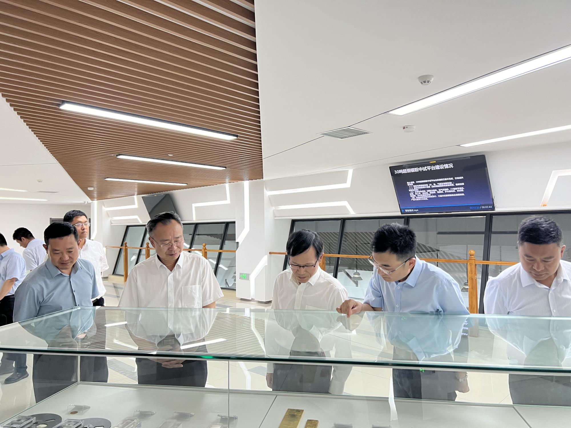 韩绍安一行参观了西安汇创30吨银粉中试生产线、贵金属绿色制备车间,观看了科研人员利用扫描电子显微镜观测银粉粒径大小操作演示、贵金属3D打印操作演示等,详细了解公司生产经营、项目建设、产品产量及市场需求、科技创新成果等情况。
