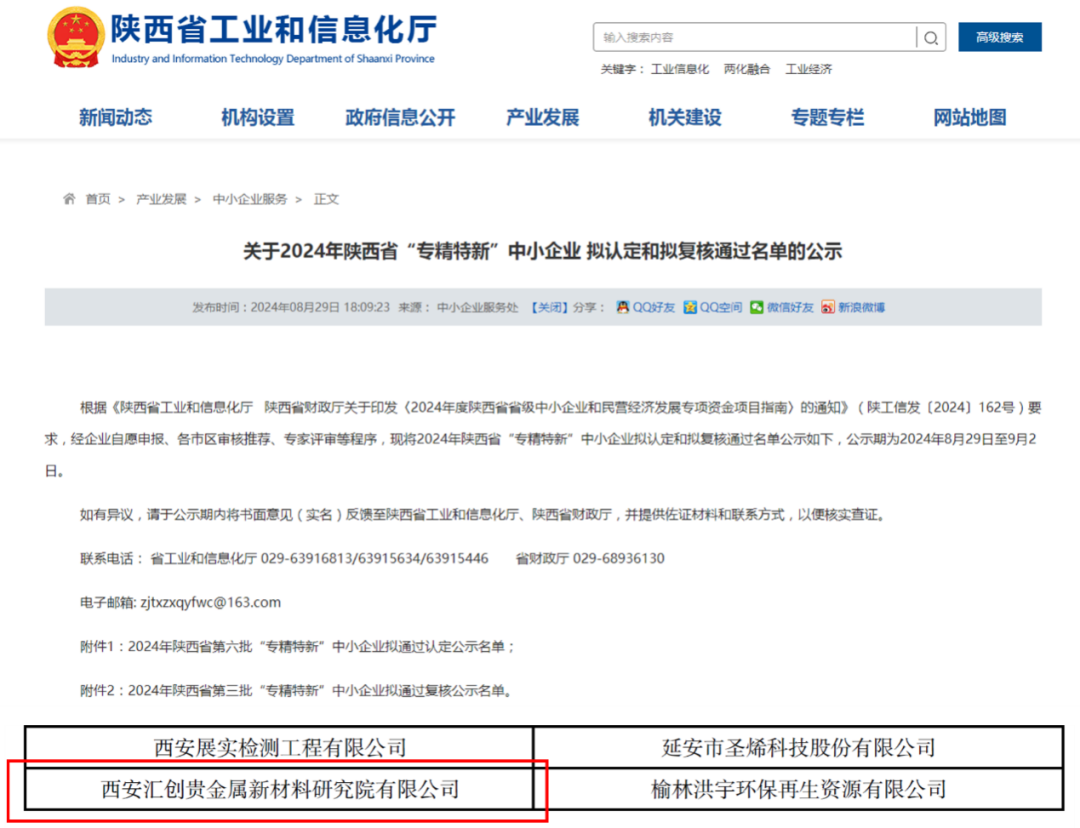 近日,西安汇创喜获2024年陕西省工业和信息化厅“专精特新”中小企业认定,这是自2023年西安汇创被认定为陕西省“创新型”中小企业以来,持续创新发展的又一个里程碑。