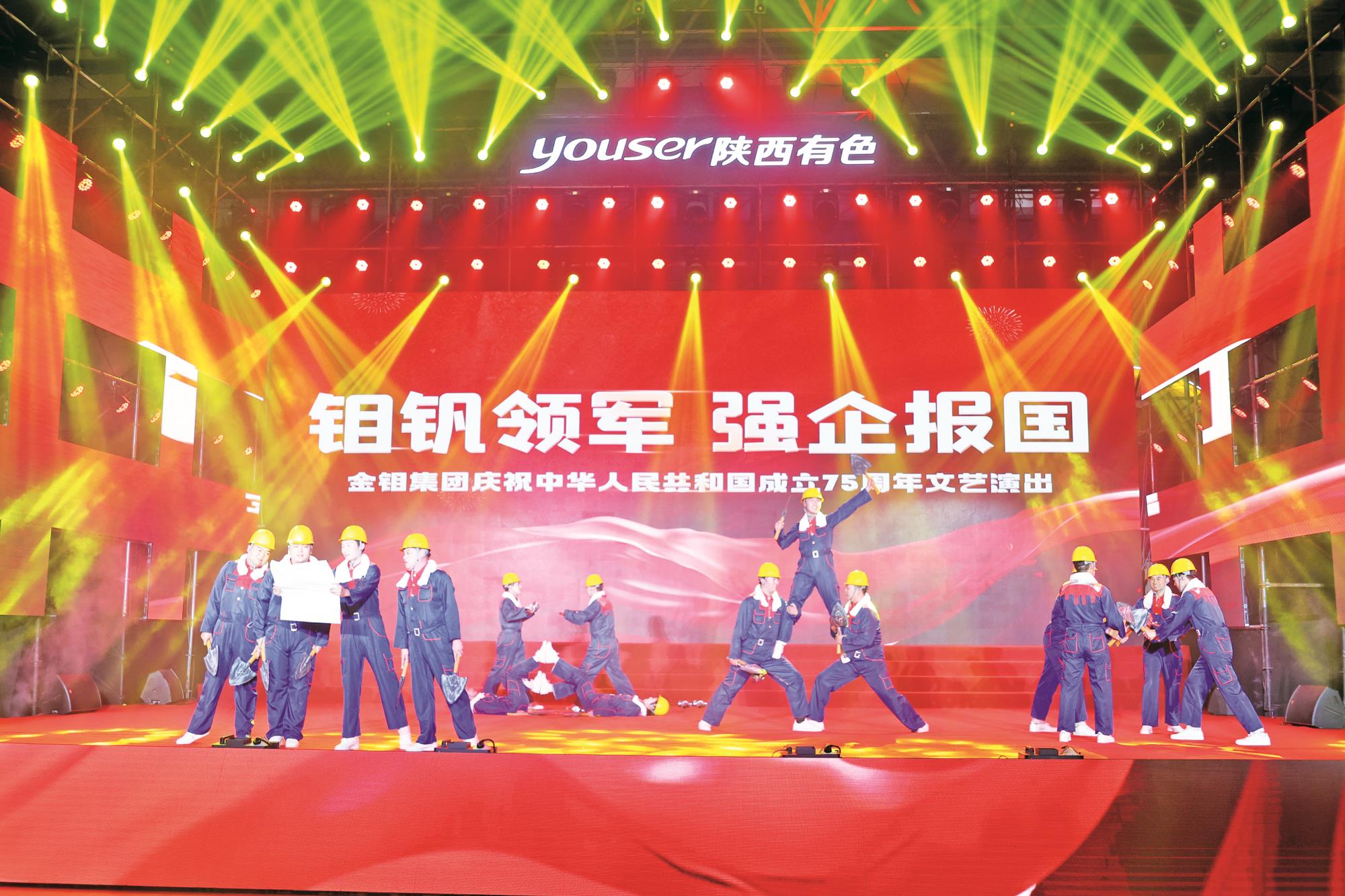 在陕西有色金属集团庆祝中华人民共和国成立75周年文艺演出中,公司编排的节目音乐快板《奋力开创新篇章》、大合唱《光荣与梦想》《歌唱祖国》,呈现了4万余名有色人心怀光荣与梦想,为谱写陕西新篇、争做西部示范作出陕西有色人新的更大的贡献!