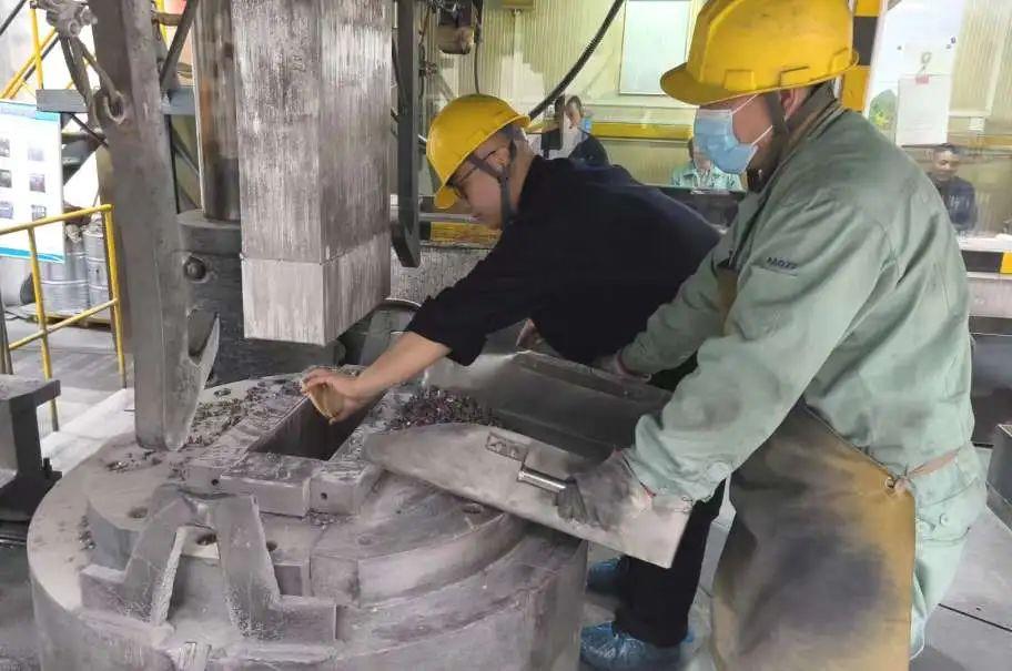 围绕三个立项项目,熔铸厂“工程师+创客室”现场技术团队创新思维模式,认真设计实施方案,深入生产一线反复试验探索、培养锻炼队伍。目前,钛合金硬α夹杂预置工艺试验及缺陷机理研究项目已完成缺陷资料收集、铸锭制备、铸锭水浸探伤、棒材锻造,后续将进行成品棒材的探伤和解剖分析,为钛材质量管控提供理论支撑。VAR炉各导电面在线精修工艺项目现已通过创新方法完成电极杆、炉帽各一个的导电面维修,维修效果优良,完全满足使用要求。01-9、01-4厂房VAR炉专用紧急供水系统设计项目已完成管网规划和图纸设计。