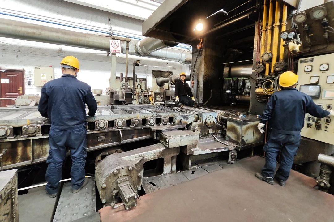 板材厂以精细化管理为抓手,持续深化生产保障机制改革。在设备管理方面,科学合理规划,推行“电钳护修专班”制度,实施生产设备“专人专管”模式,顺利完成了燃气加热炉助燃风机加装冷却系统及变频器国产化改造,及老酸洗生产线沉淀池斜板的更换,且主要生产设备故障响应时间缩短至10分钟,关键设备故障率降至0.32%。在物料流转环节上,建立“快进快出”动态监控系统,通过实时追踪物料的流动状态,实现库存的精准管理,物流周转效率大幅提高,在制品生产周期压缩至7天,大大降低了资金占用率。在质量管控方面,强化全过程追溯,严肃质量考核纪律,对重点牌号实施“一单一策”专项监控,重点合同交付率稳步提升。同时,依托王敏劳模和工匠人才创新工作室,顺利完成超薄板材科研试制工作。冷轧工序实施“工匠带徒”技能传承,轧制通过量同比提高21.5%,创历史新高。热轧工序实施优质操作法,通过量同比提高17.3%,且轧制产品全部符合转序和交付标准。