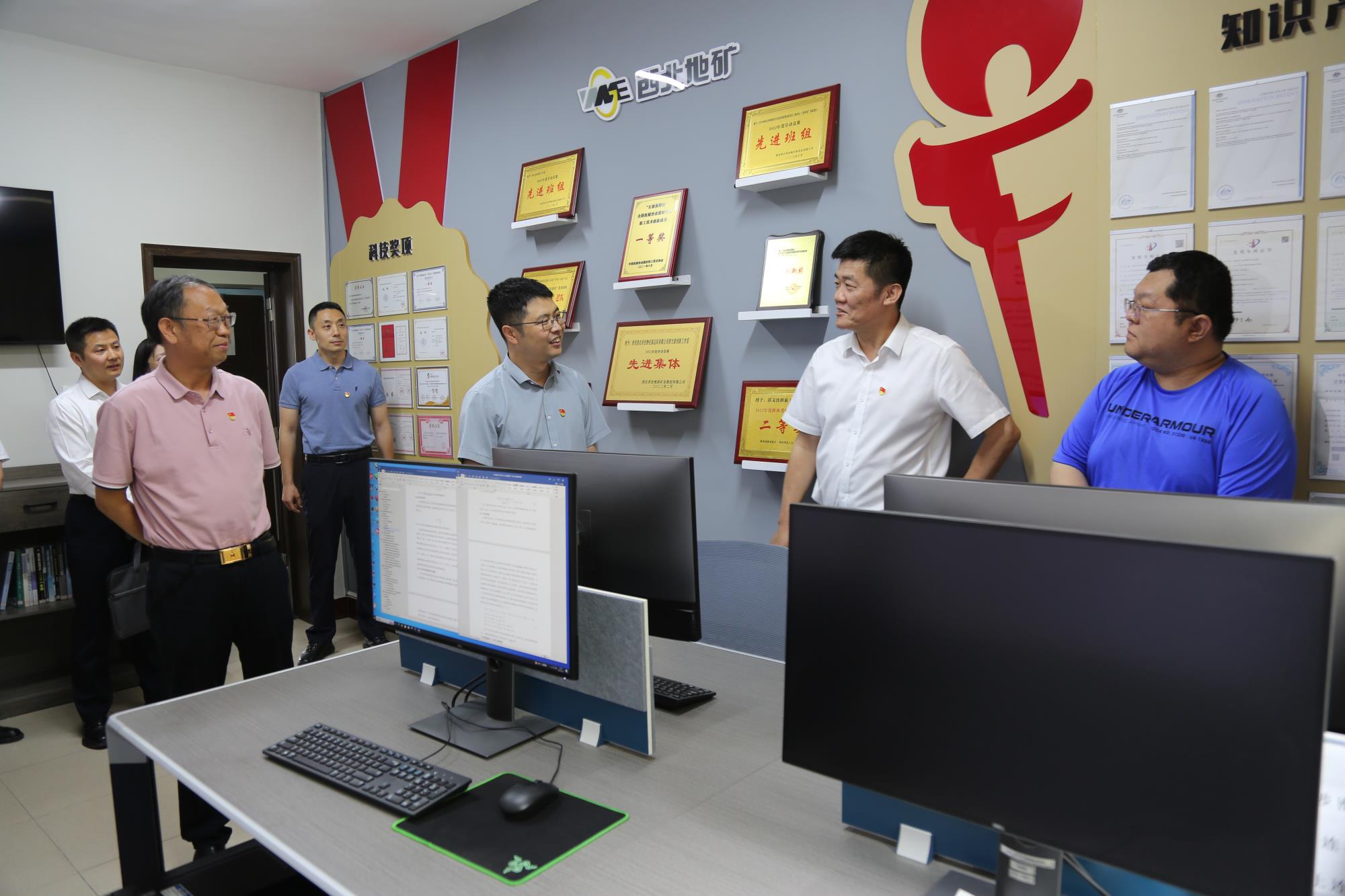 最后,王小庆一行还参观了郭文波创新工作室数据处理中心及新研发的瞬变电磁设备, 陕西有色金属集团党委宣传部相关人员陪同调研。地矿集团、黄金集团工会副主席、党委宣传部部长,物化探总队公司领导班子成员、中层干部以及机关支部全体党员聆听宣讲,相关部门负责人参加座谈。