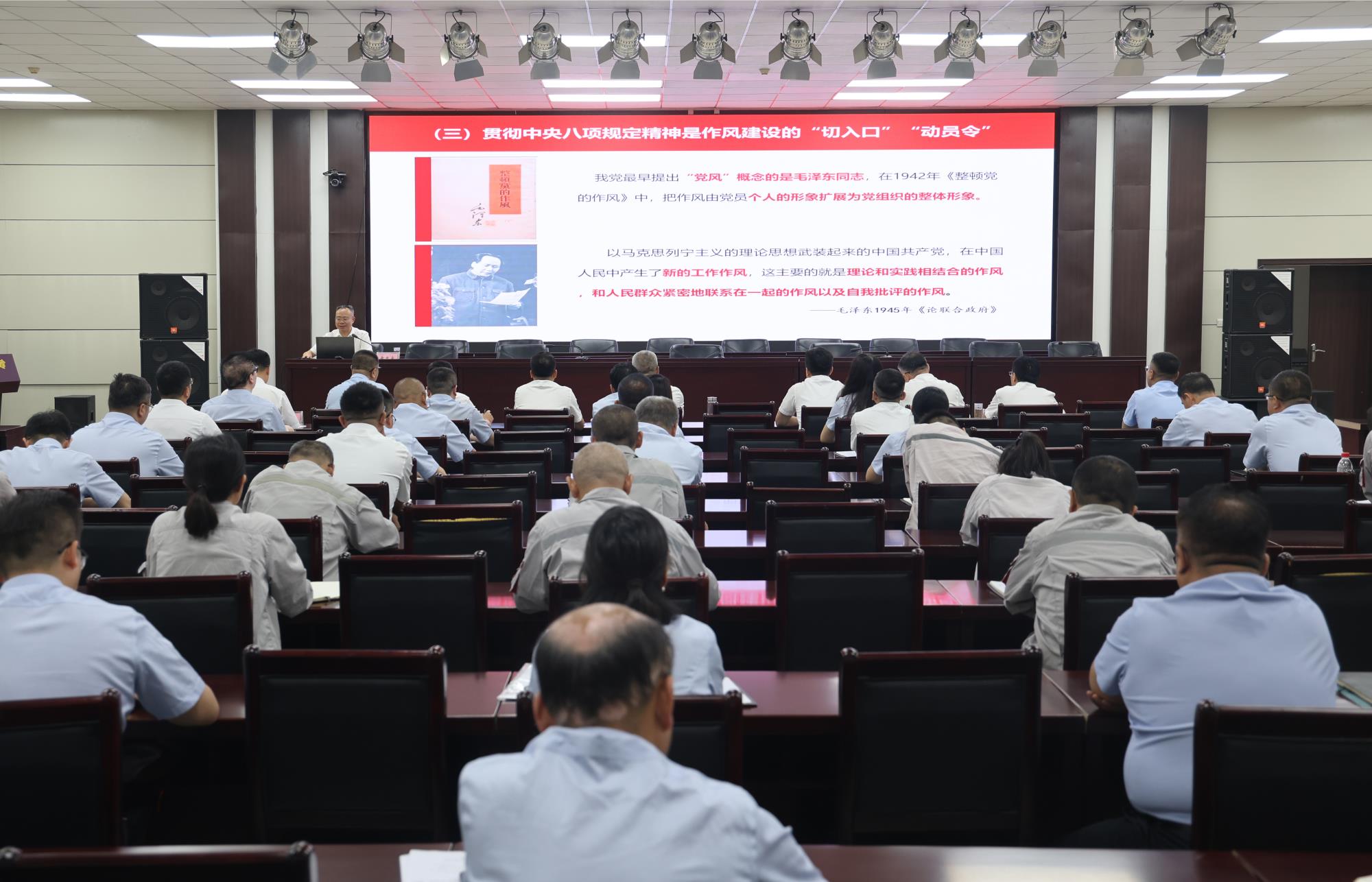 6月30日,陕西有色金属集团党委委员、副总经理黄忠良以“锲而不舍落实中央八项规定精神,以作风建设新成效赋能高质量转型升级”为主题,为陕西美鑫公司党员干部讲授深入贯彻中央八项规定精神学习教育专题党课。陕西美鑫公司领导班子成员,机关各部门负责人,二级单位党组织负责人、综合办公室主任、党务专责,铝镁合金分公司电解二车间党员代表共计50余人聆听党课。