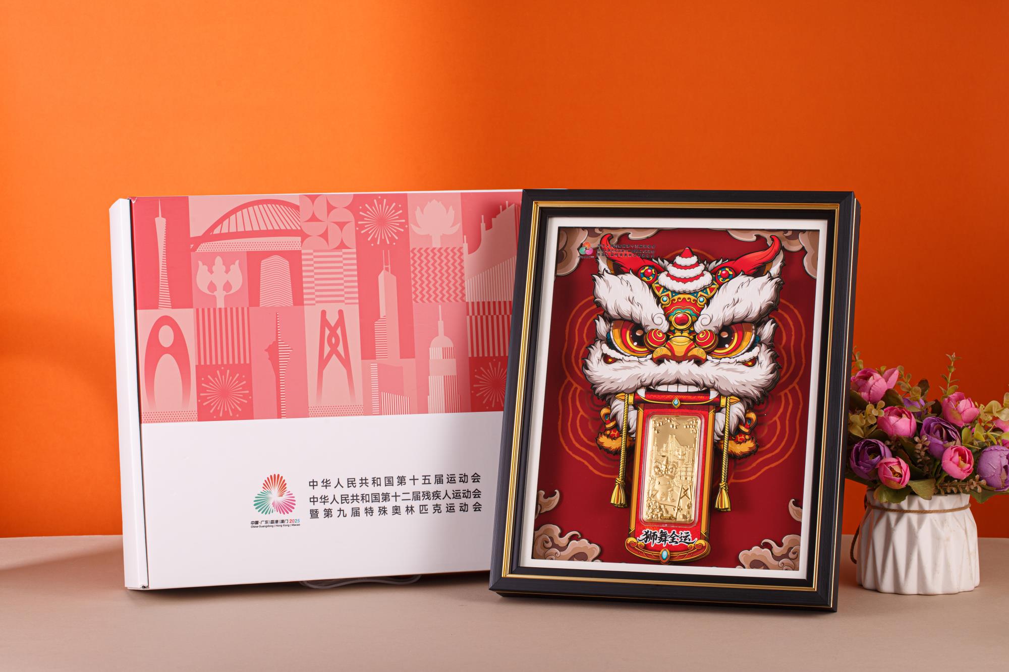 近日,由陕西黄金集团特许生产的第十五届全国运动会纪念版画——《狮舞全运》正式面市。《狮舞全运》纪念版画以岭南醒狮为灵感,融合粤港澳三地文化符号,打造出集艺术、收藏、纪念于一体的高端文创礼品,成为本届全运会特许商品中的一大亮点。