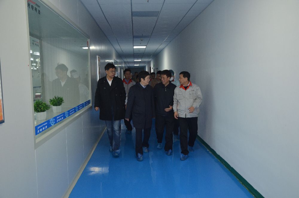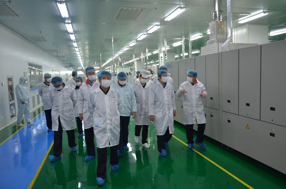 在乘车沿途参观厂容厂貌并听取范董事长、田总经理关于项目建设的基本情况介绍后,岳主任一行深入105电池事业部调研参观。高效电池事业部是光电科技多晶、单晶电池片的关键工序生产线,拥有德国、荷兰等国际一流的光伏自动化全套装备。岳主任兴致勃勃按工序顺次仔细察看,叮嘱陪同的新区和新城领导要全力支持公司做强做大做优,强调要高度重视省内市场拉动作用,在市场好的时候,一定要抓住机遇,鼓励企业下决心上产线,加快产能释放,早日达产达效,为新区经济社会发展做出更大贡献。