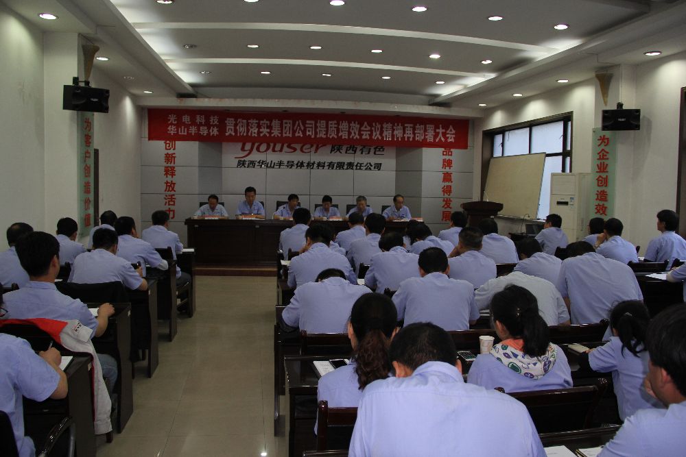 为了及时传达贯彻落实集团公司提质增效工作会议精神,对提质增效工作再动员、再部署、再强化,5月13日上午,光电科技、华山半导体两公司召开了贯彻落实集团公司提质增效工作会议精神大会。公司领导、全体干部共计70余人参加会议。总经理田建之主持会议。