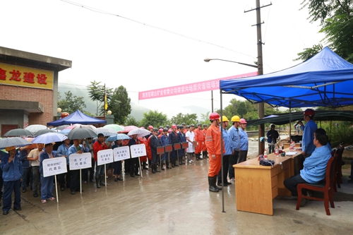 这是陕西铅硐山矿业有限公司正在举行的蒋家沟排渣场泥石流地质灾害现场处置应急演练的情景。