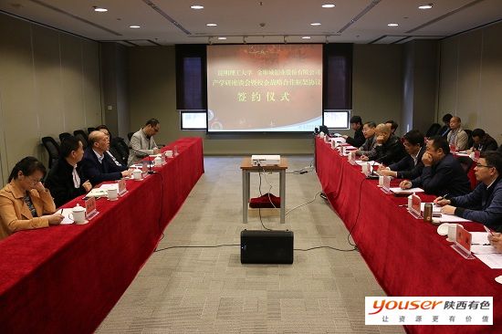 3月16日上午,昆明理工大学与金堆城钼业股份有限公司签订校企战略合作框架协议签字仪式在莲华校区伍集成会堂三楼第二会议室举行。金堆城钼业股份有限公司总工程师朱永安、技术中心主任曹维成,昆明理工大学校长彭金辉、副校长袁希平出席会议;金堆城钼业股份有限公司技术中心钼金属化工研究部负责人,昆明理工大学校办、校友工作与社会合作办、科技处、科技产业公司、国土资源工程学院、冶金与能源工程学院、材料科学与工程学院、环境科学与工程学院、化学工程学院、非常规冶金教育部重点实验室负责人参加仪式。