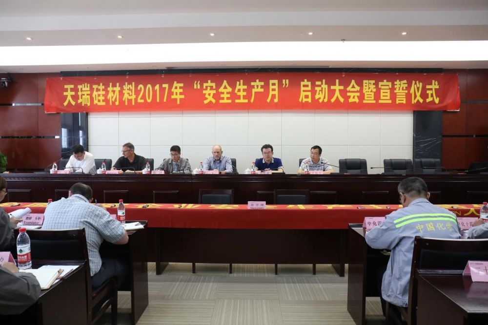 2017年6月是全国第16个“安全生产月”,活动主题为“全面落实企业安全生产主体责任”。5月31日上午10时,天瑞硅材料召开 “安全生产月”启动大会暨宣誓仪式,正式拉开了“安全生产月”活动的帷幕。天瑞硅材料相关领导,各部室以及监理单位、承包商单位代表参加了活动仪式。