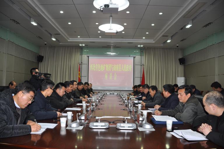 2019年1月10日下午,地矿集团董事长、党委书记秦西社,总经理高菊生,党委副书记、工会主席李忠民等一行,前往集团所属陕西华源矿业有限责任公司所在地商洛市商南县,与商南县政府开展座谈交流,双方就进一步加强互利合作、促进华源公司更好更快发展等进行对接洽谈。商南县县长崔华锋出席会议,县委常委、副县长张贤慧主持会议。